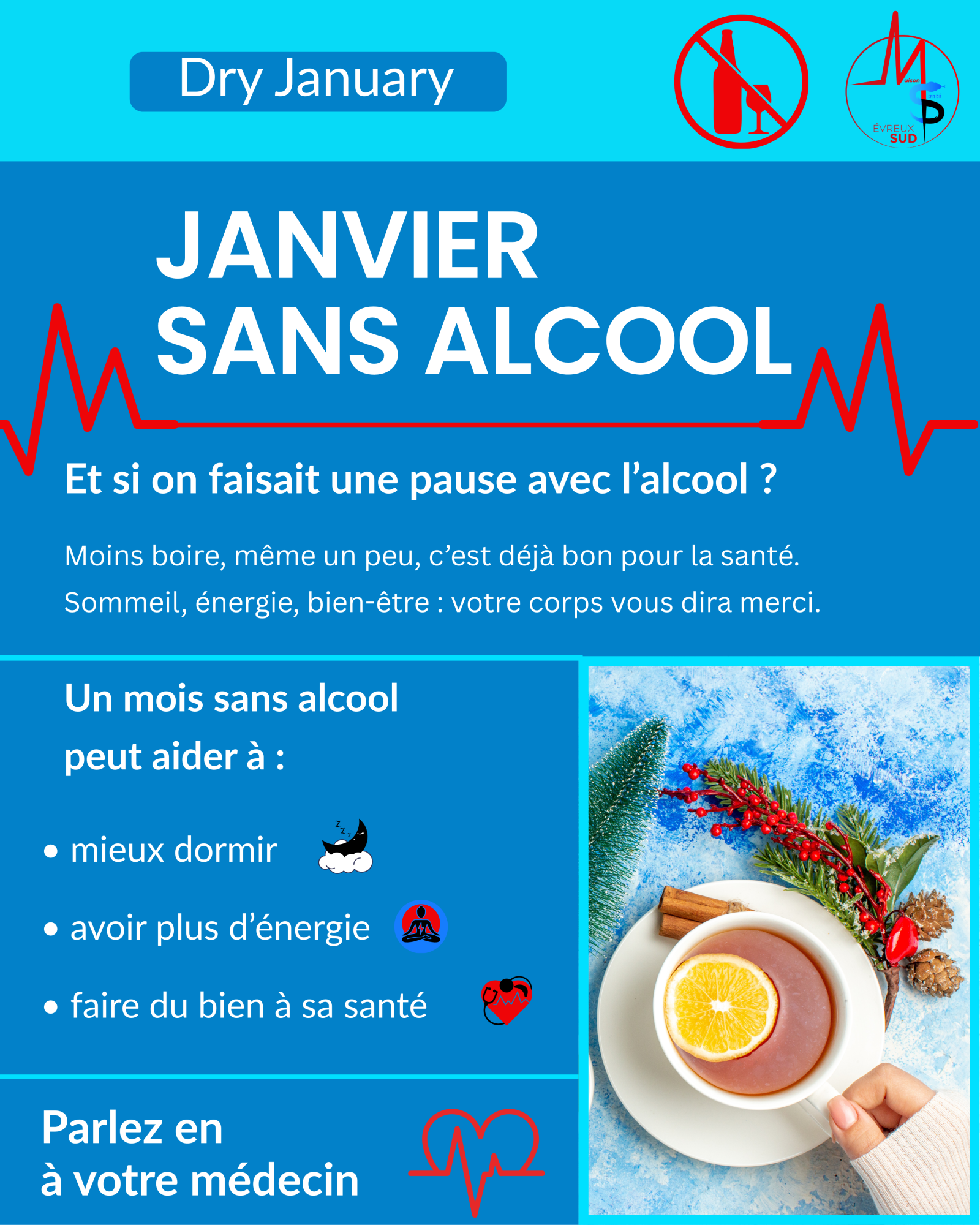 💧JANVIER SANS ALCOOL 💧 Et si on faisait une pause avec l’alcool ?Moins boire, même un peu, c’est déjà bon pour la santé. 😴 Meilleur sommeil⚡ Plus d’énergie💙 Plus de bien-être Ton corps te dira merci. Es-tu prêt à relever le défi ? 💪🌿 Pas de pression, pas de jugement : chacun avance à son […]